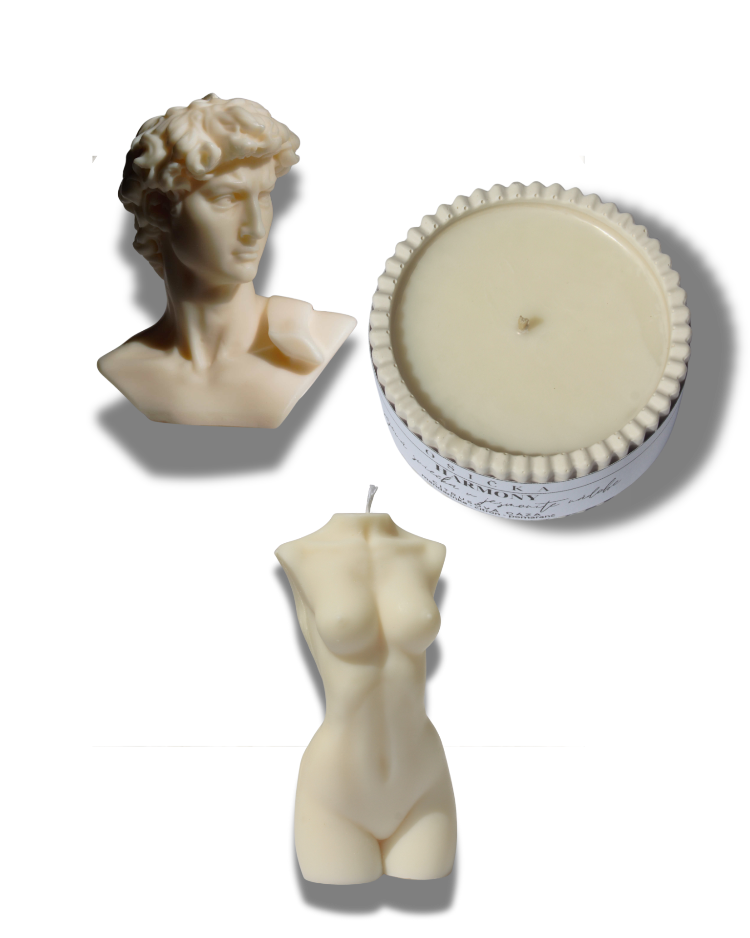 Naša sójová sviečka DAVID je unikátnym poctením jedného z najvýznamnejších diel renesančného umenia – sochy David od Michelangela.   Sochárska sviečka David je ikonickým kúskom, ktorý spája klasické umenie a moderný interiérový dizajn. Je vyrobená zo 100 % prírodného sójového vosku, ktorý horí čistejšie a dlhšie než parafínové sviečky. Táto ekologická a dekoratívna sviečka je dostupná bez vône alebo s pridaním prírodných esenciálnych olejov , ktoré menia horenie na aromaterapeutický zážitok. Sójová sviečka David je ideálna pre tých, ktorí hľadajú elegantný dizajn, zdravšie alternatívy a jedinečnú atmosféru domova. Rozmery : 13 cm x 14,5 cm (Šírka x Výška) Váha : 395 gramov