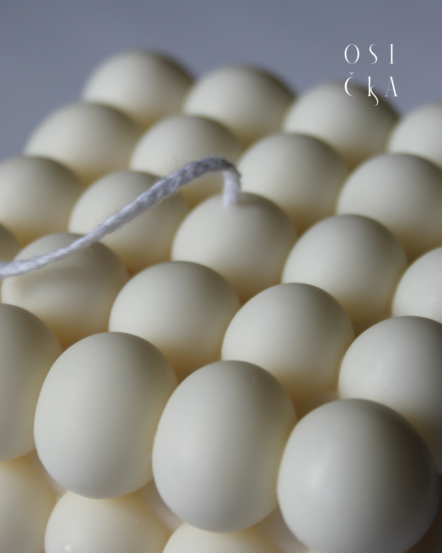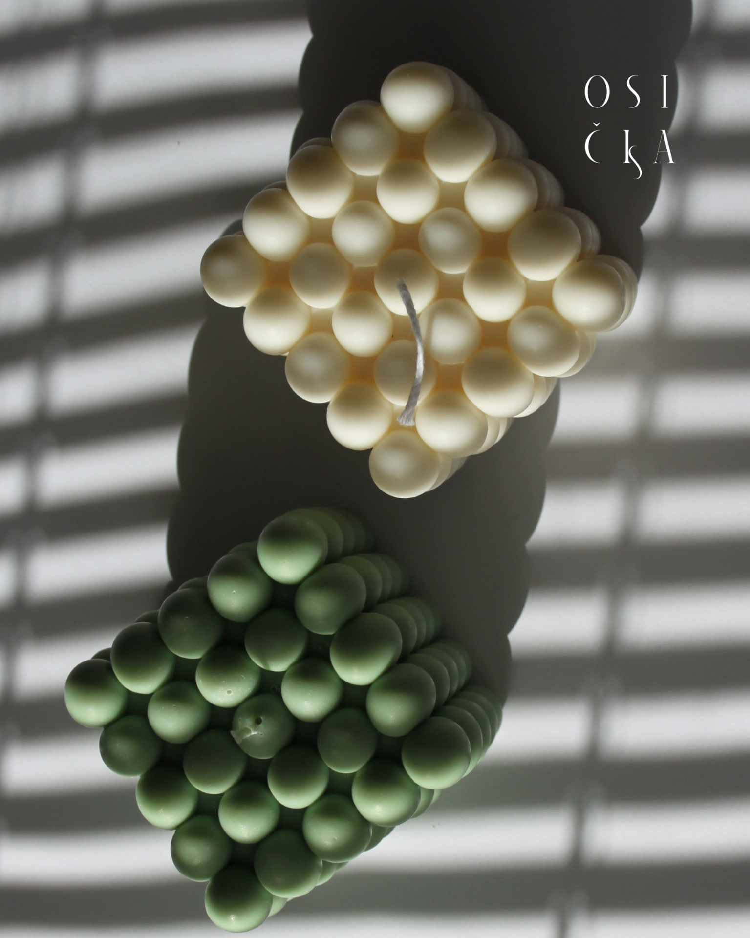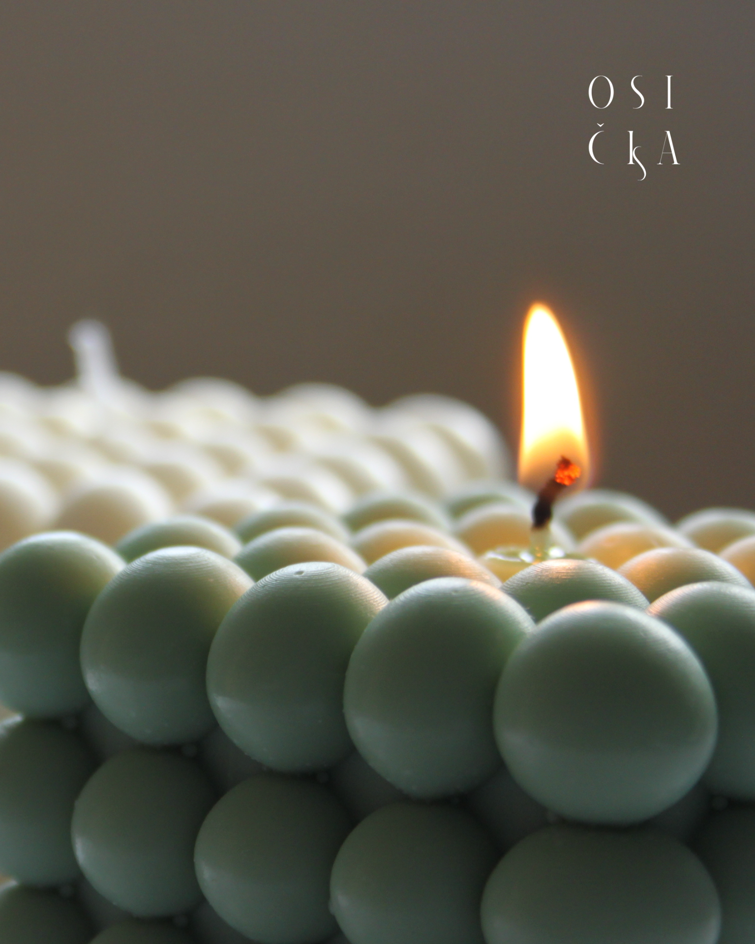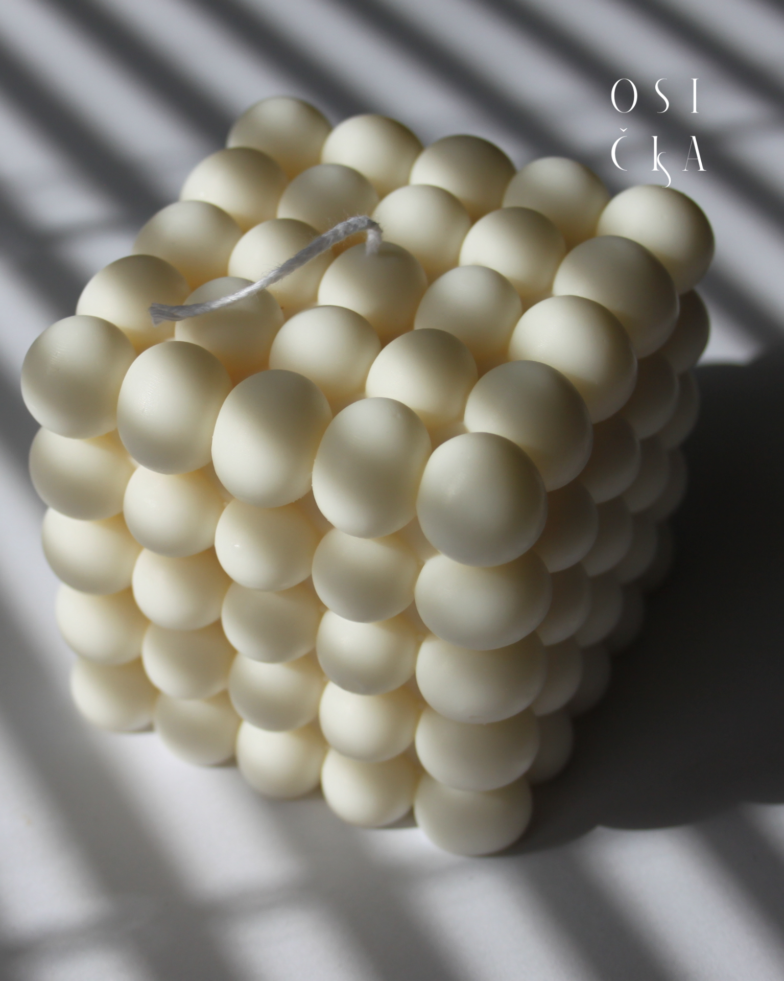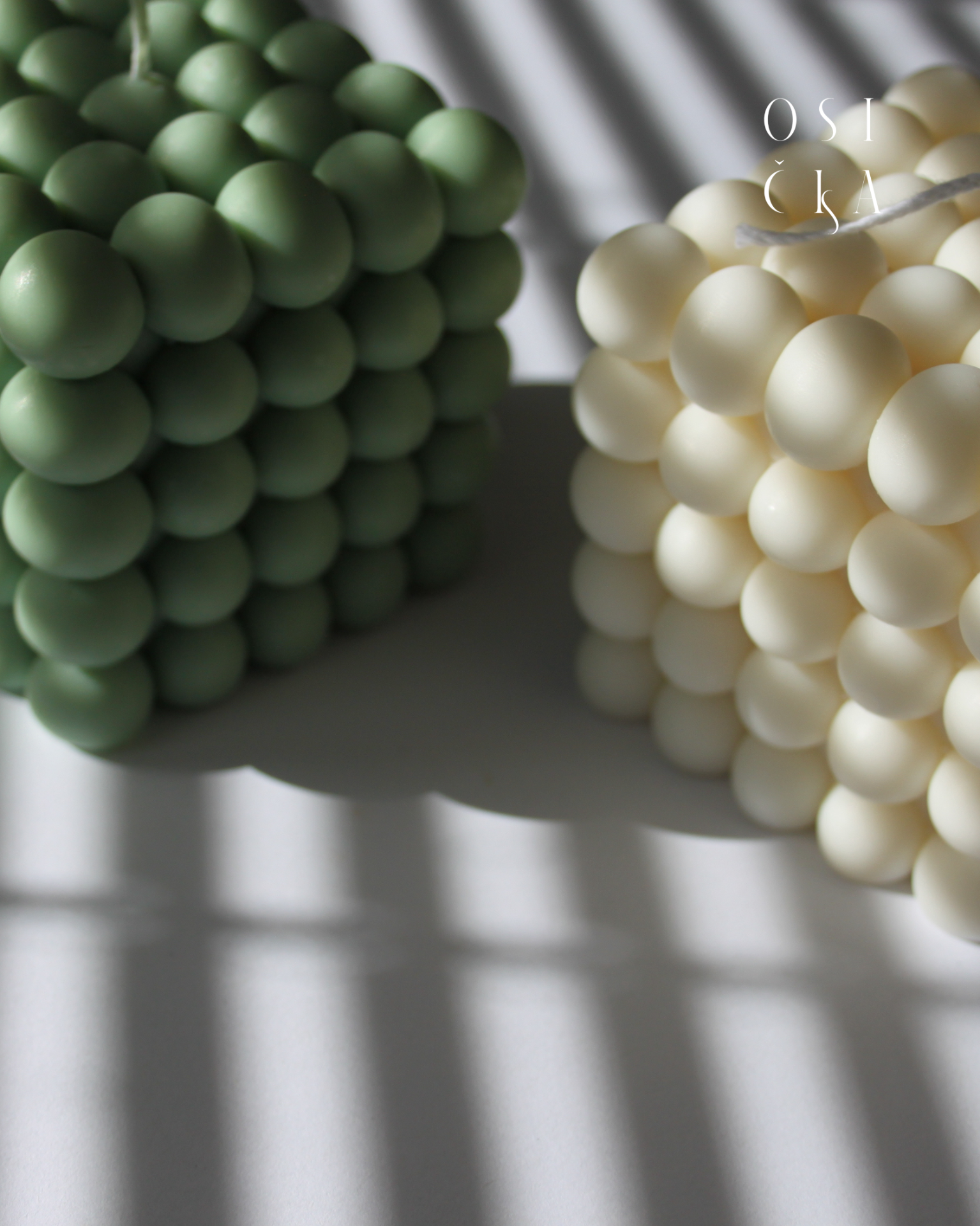 Sviečka Bubble S je odlievaná ručne zo 100% sójového vosku rastliného pôvodu. Kažďá sviečka má prírodný bavlnený knôt.