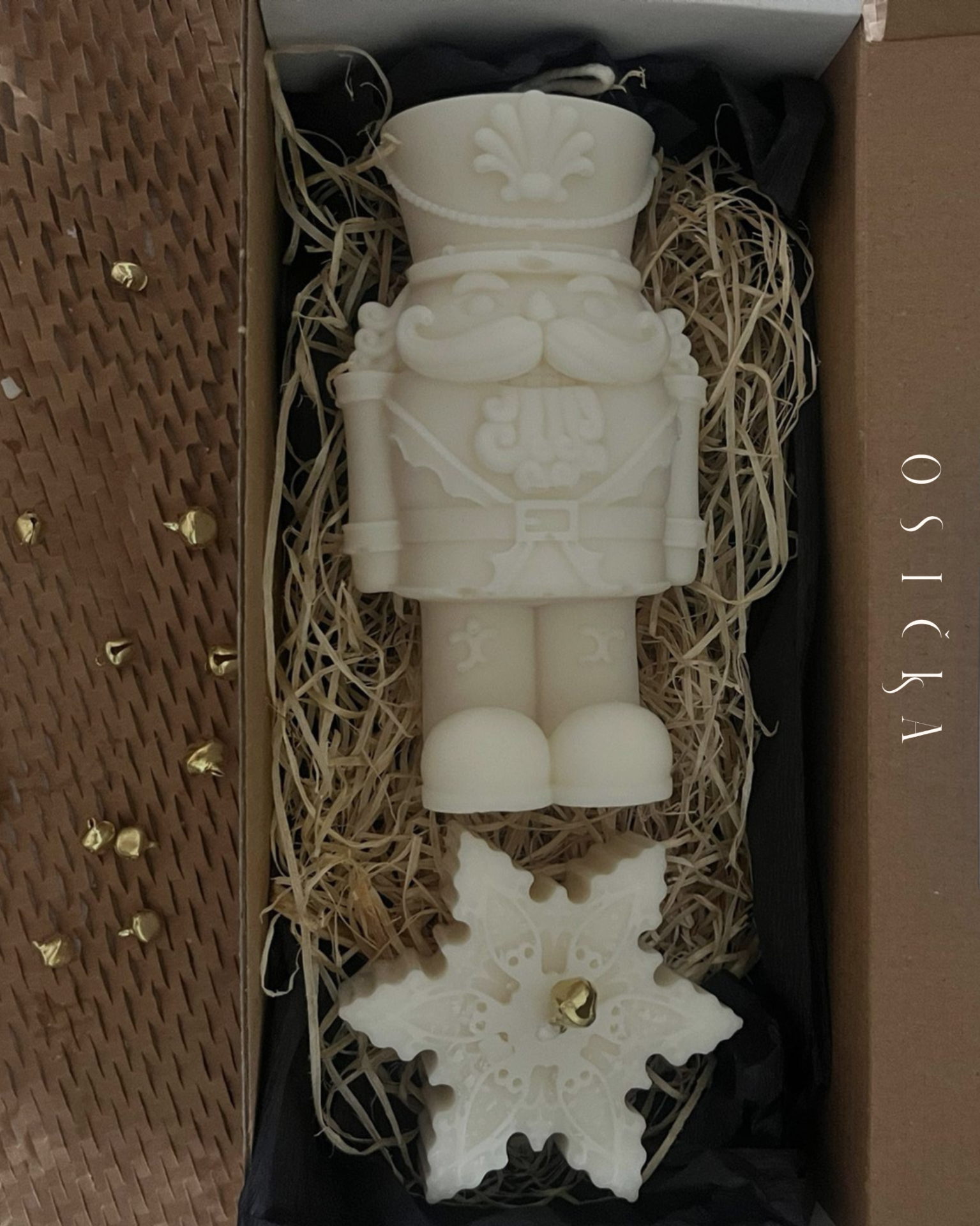 Vianočný box Vianočný príbeh je odlievaný ručne zo 100% sójového vosku rastliného pôvodu. Kažďá sviečka má prírodný bavlnený knôt.